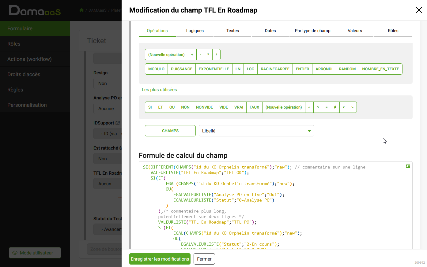 Le champ « Opération sur un Champ Texte de Fiches Liées » gagne une option « Supprimer les doublons » pour générer des valeurs sans doublon.