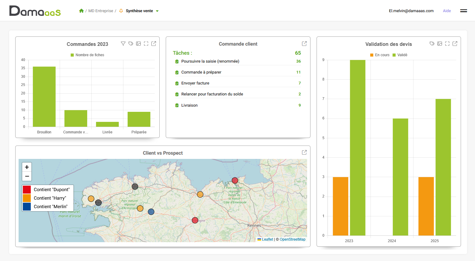 Composé de widgets dynamiques, le portail centralise des vues issues des différents modules DAMAaaS : graphiques, cartes, listes de tâches… pour un pilotage plus visuel et plus efficace.