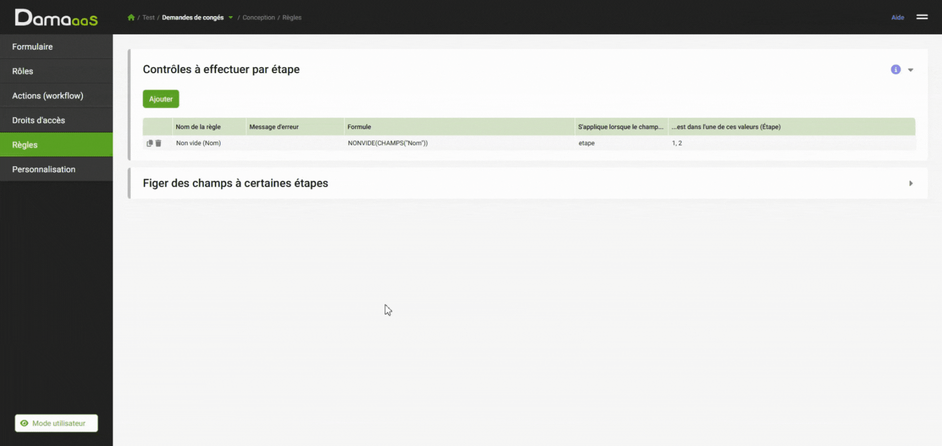 Dupliquer une règle “Contrôle à effectuer par étape”